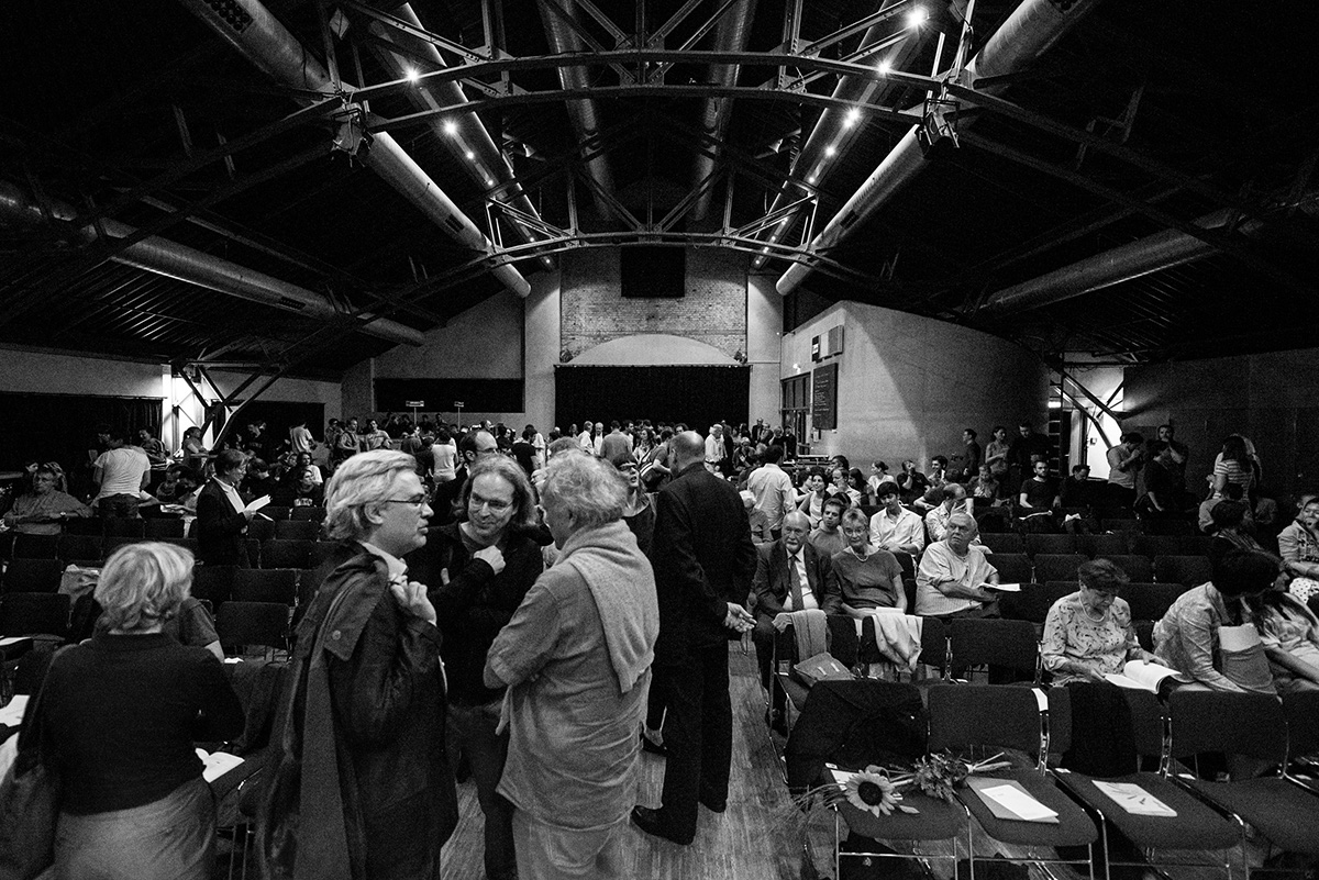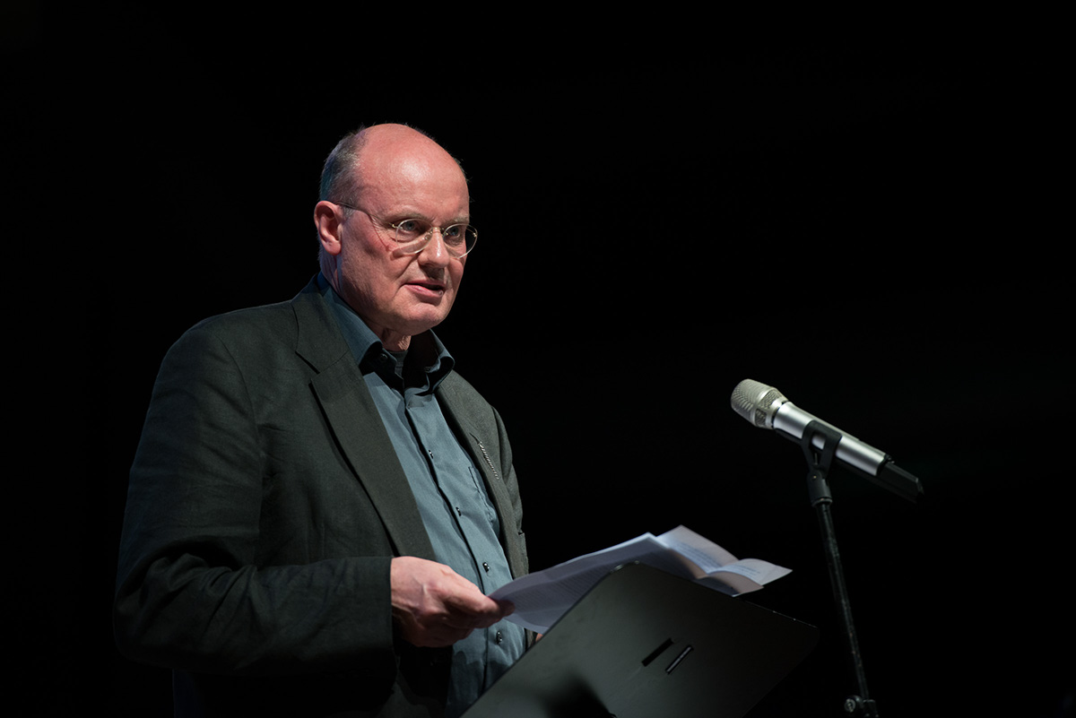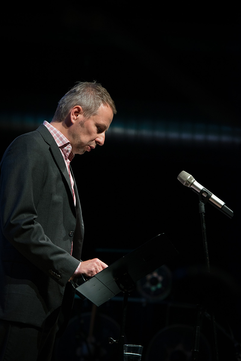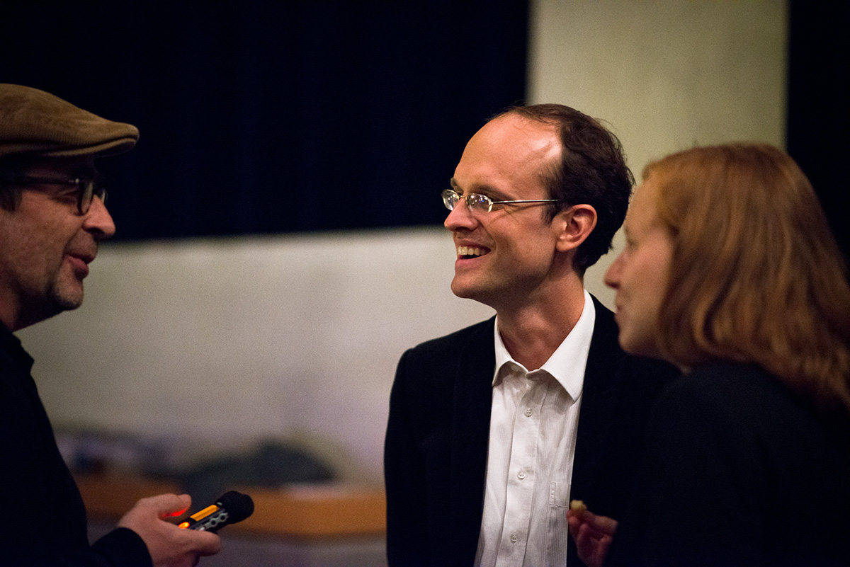 Preisverleihung des Schulz-Preises im Rahmen des Konzertes mit dem des Ensemble Nikel in der Centralstation Darmstadt. Nach der Begrüßung durch den Leiter des Internationalen MusikInstituts Darmstadt (Thomas Schäfer) hielt der Juryvorsitzende des Reinhard-Schulz-Preises für zeitgenössische Musikpublizistik die Laudation auf den Preisträger Benedikt Leßmann. Fotos: Petra Basche / Interview: Martin Hufner